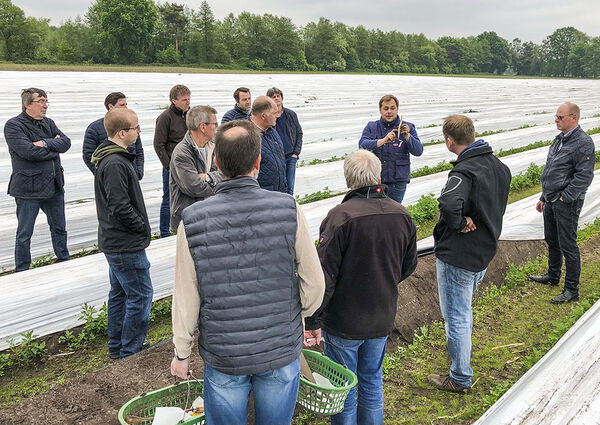 Der Abend begann mit einem traditionellen Willkommens-Trunk und der Begrüßung durch Henner und Ulrich Erpenbeck. Anschließend teilten sich die Unternehmerinnen und Unternehmer in zwei Gruppen "westfälischer Art" auf. Die Frauen konnten sich zuerst zusammen mit Henner einen Eindruck auf dem Feld verschaffen und sich selbst im Spargel stechen probieren. Für die Männer ging es mit Ulrich durch den Hofladen hinter die Kulissen der Spargel- und Schinkenproduktion. Nachdem die Gruppen getauscht wurden gab es noch ein reichhaltiges Spargelbuffet. Fazit: Ein sehr gelungener und ausgesprochen informativer Abend. Großes Dankeschön an Ulrich und Henner Erpenbeck!