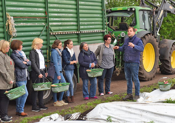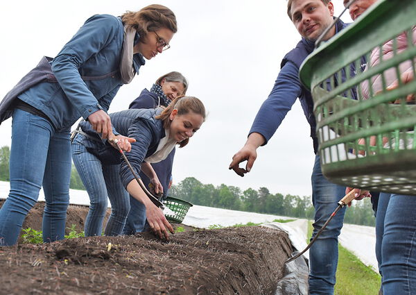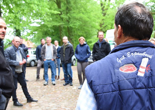 Der Abend begann mit einem traditionellen Willkommens-Trunk und der Begrüßung durch Henner und Ulrich Erpenbeck. Anschließend teilten sich die Unternehmerinnen und Unternehmer in zwei Gruppen "westfälischer Art" auf. Die Frauen konnten sich zuerst zusammen mit Henner einen Eindruck auf dem Feld verschaffen und sich selbst im Spargel stechen probieren. Für die Männer ging es mit Ulrich durch den Hofladen hinter die Kulissen der Spargel- und Schinkenproduktion. Nachdem die Gruppen getauscht wurden gab es noch ein reichhaltiges Spargelbuffet. Fazit: Ein sehr gelungener und ausgesprochen informativer Abend. Großes Dankeschön an Ulrich und Henner Erpenbeck!